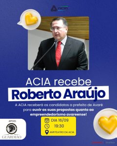 Acia recebe Roberto Araujo admin2024-09-15T14:40:37+00:00 Comentários desativados em Acia recebe Roberto Araujo Todos associados e parceiros são convidados. #aciaavare #eleicoes2024